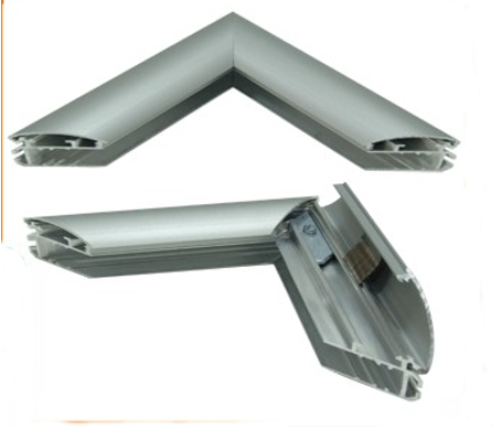 Алюминиевыйый профиль серо стального цвета. Особенность данного профиля в том, что он состоит из двух частей: это основной профиль и накрывающий профиль, что позволяет (не разбирая конструкции), быстро заменить изображение. Подходит для щитов и стендов с часто меняющейся информацией.